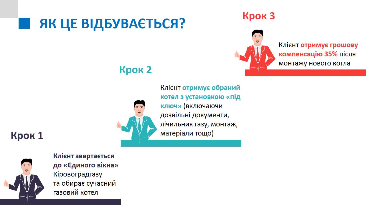 компенсацію 35% . Процес для споживача максимально спрощено: співробітники Кіровоградгазу