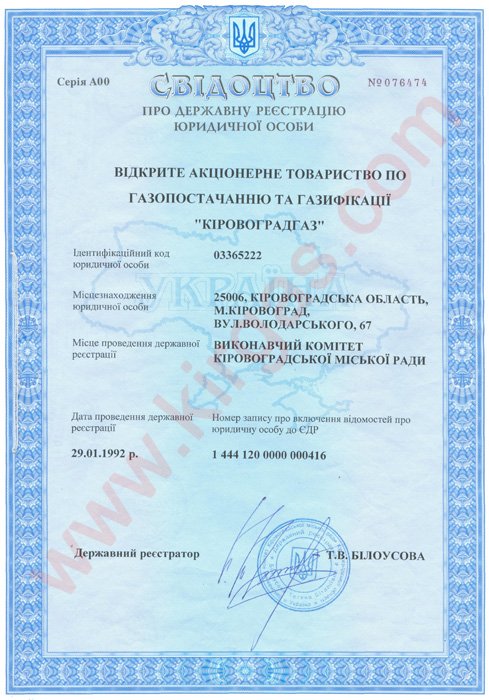 Статут Товариства, зміни до статуту, свідоцтво про державну реєстрацію Товариства